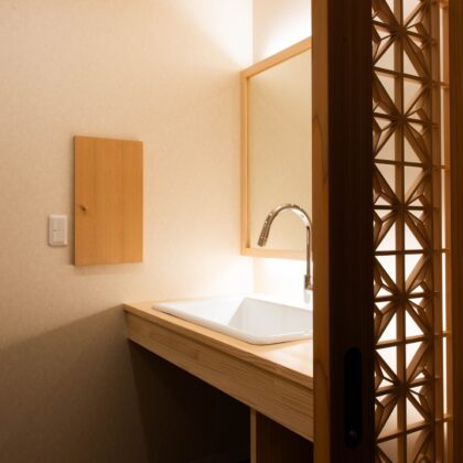 職人が手がけた、オリジナル建具と造作家具の洗面台 一棟入魂の家造り ㈱カネタケ竹内建築